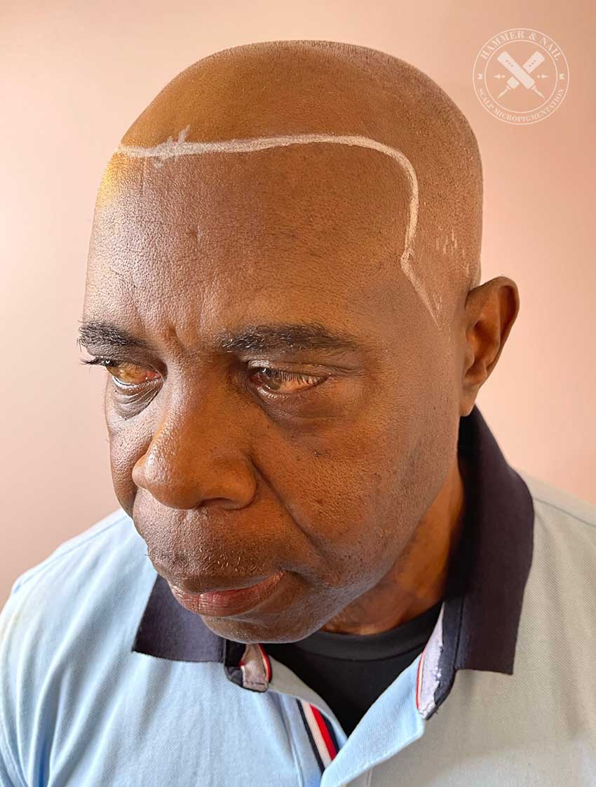 Our scalp micropigmentation technique for female clients introduces thousands of tiny micro-dots to the scalp, reducing the color contrast and effectively hiding areas where the hair has become thinner.